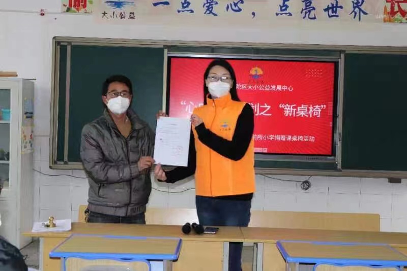 齐蓁科技为救助视网膜母细胞瘤患儿签订十年之约,为云南省曲靖市陆良县马街镇前所学校的学生改善学习环境,捐赠新课桌献上绵薄之力。
